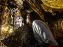 Peregrinos abrazando al Apóstol