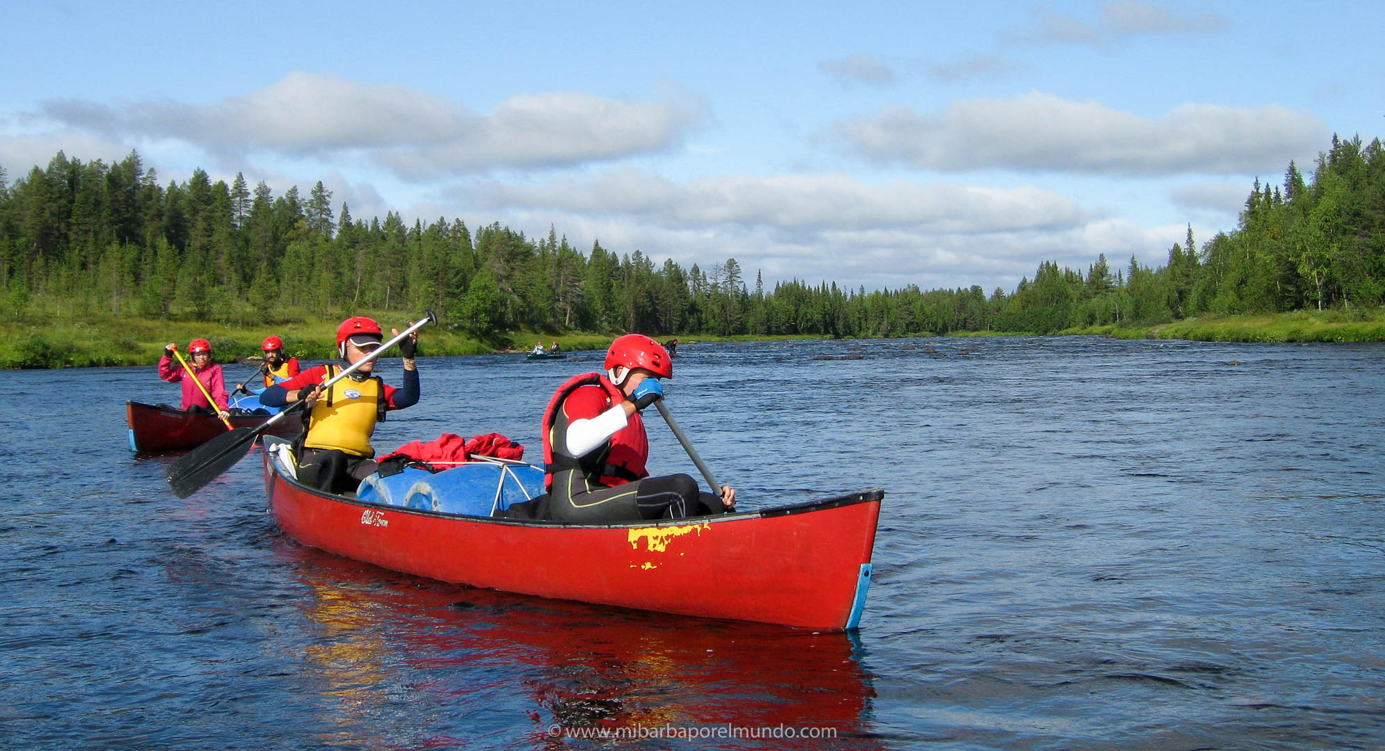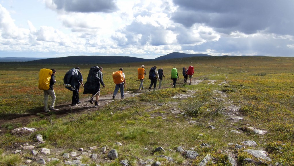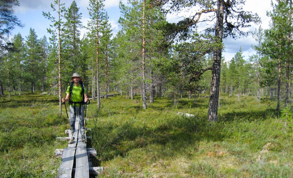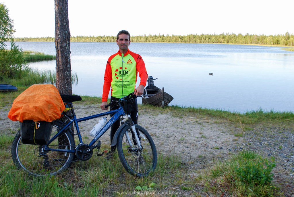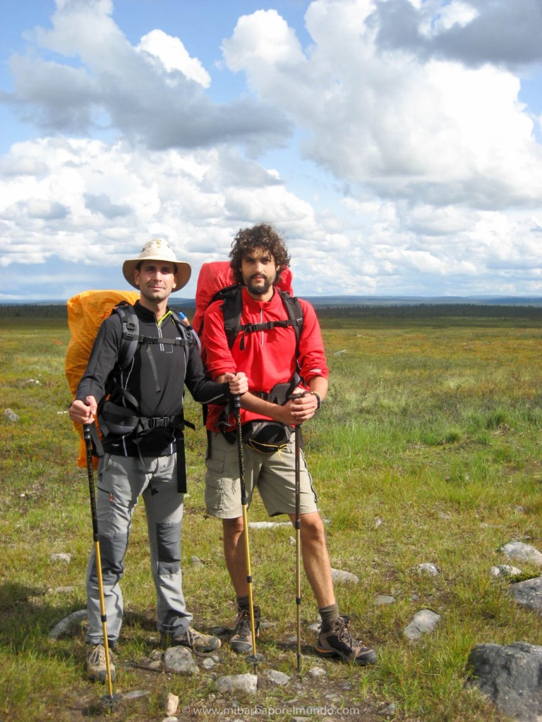 La idea de viajar de otra manera a la que conocía no dejaba de rondarme por la cabeza. Algo me empujaba a otra toma de contacto con la naturaleza que veía, necesitaba un acercamiento, otra manera de viajar. Y vino en 2009 de la mano de una agencia diferente: Tierras Polares. Proponían un viaje a la región finlandesa de Laponia (está dentro del Círculo Polar Ártico) viviéndolo desde dentro. Se haría un tercio andando (trekking), otro tercio en canoa y el último tercio en bicicleta. Un viaje de casi dos semanas para recorrer 345 kms atravesando la Laponia finlandesa de Norte a Sur sin utilizar medios motorizados. ¡Ahí es na! Enseguida mis ojos dieron un doble check al viaje 😉