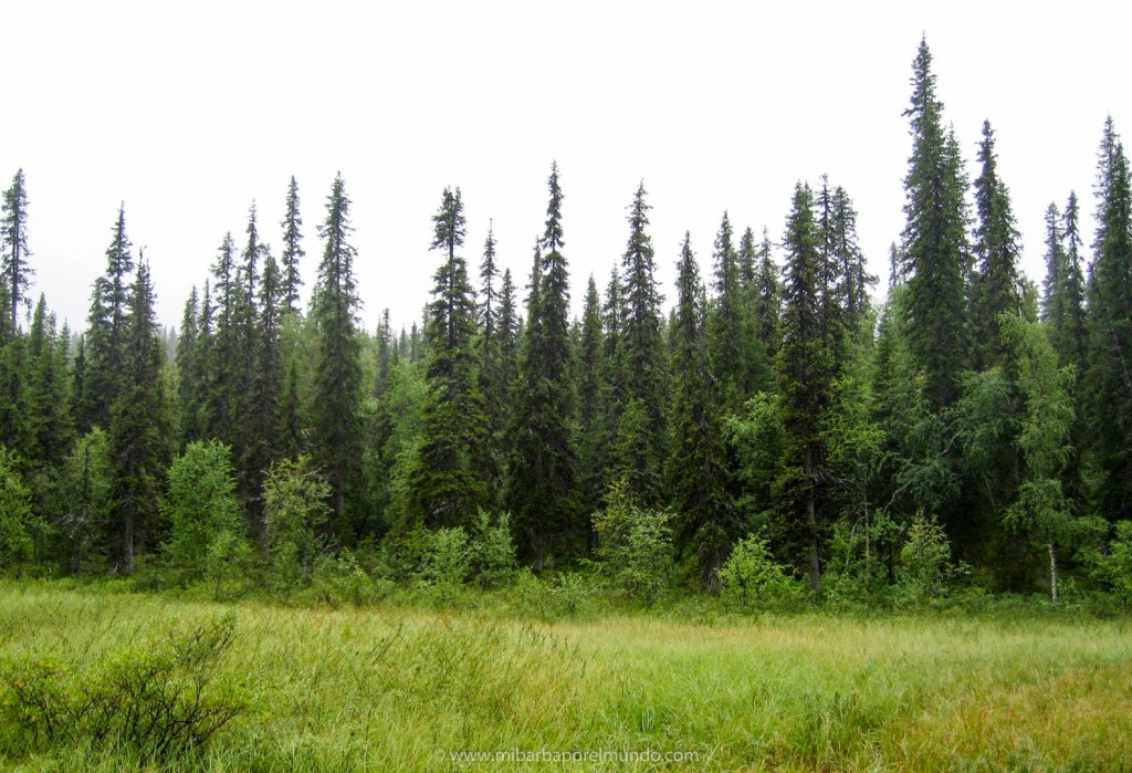 De vez en cuando me quedaba parado, ahí, en medio del bosque boreal, dejaba que el grupo me sacase varias decenas metros para quedarme solo, y os prometo que no oyes nada. Nada de nada. Si había algún pájaro, desde luego que vuela con silenciador. Maravilloso.