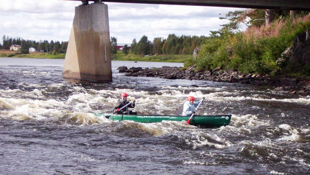 Las horas y los días transcurren sin problemas: buen tiempo con alguna lluvia aislada y, aunque sea mi blog y hubiera podido dármelas de superhéroe, ¡la verdad es que los brazos se te iban cansando muchísimo! ;P El último rápido de la etapa final es el más potente. Lo cierto es que, desde lejos, parece mucho menos heavy de lo que luego te encuentras: ¡olas de casi un metro! Las olas las provoca la corriente y las piedras enormes que hay debajo, y un metro puede parecer poco, pero cuando vas en una canoa canadiense (a ras de suelo) te inundan en un instante y te vuelcan, como si estuvieras viajando en una hojita de papel.