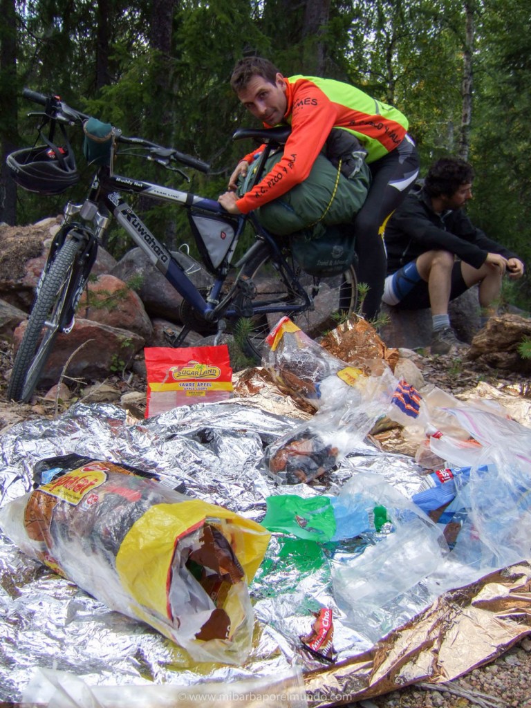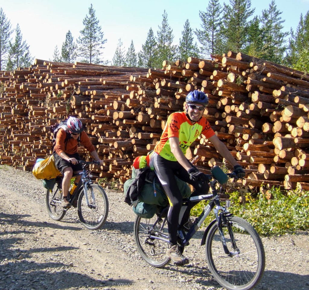 La tercera y última parte de este viaje es en bicicleta, en plan cicloturismo, pero con bicicletas de montaña, claro. Como de costumbre en estos viajes… cargando sólo lo imprescindible. Saco de dormir, ropa y comida a cuestas: ¡nos habíamos convertido en caracoles con la casa en la espalda!